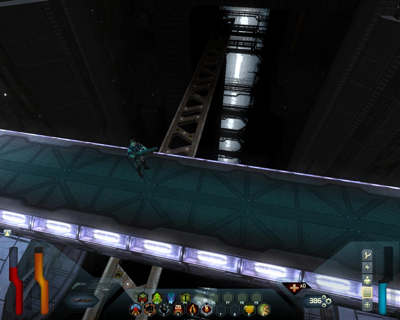 BTW направих си едно малко експериментче… На много места в играта има нахвърляни мини. В някой части на кораба има нахвърляни и баскетболни топки (който заради някой безумец са бели) който отскачат „реалистично“ при удар. Та реших да пробвам да „търкулна“ една такава топка в един коридор с мини и така да ги взривя. С лека мъка вкарах топката в коридора, само дето мините въобще не реагираха.