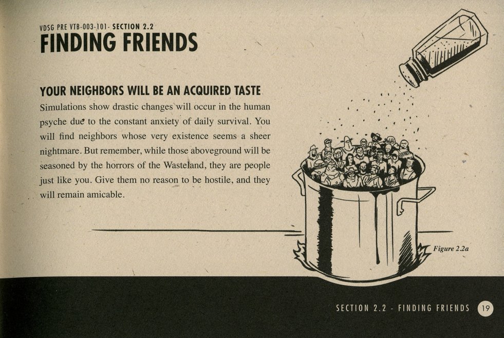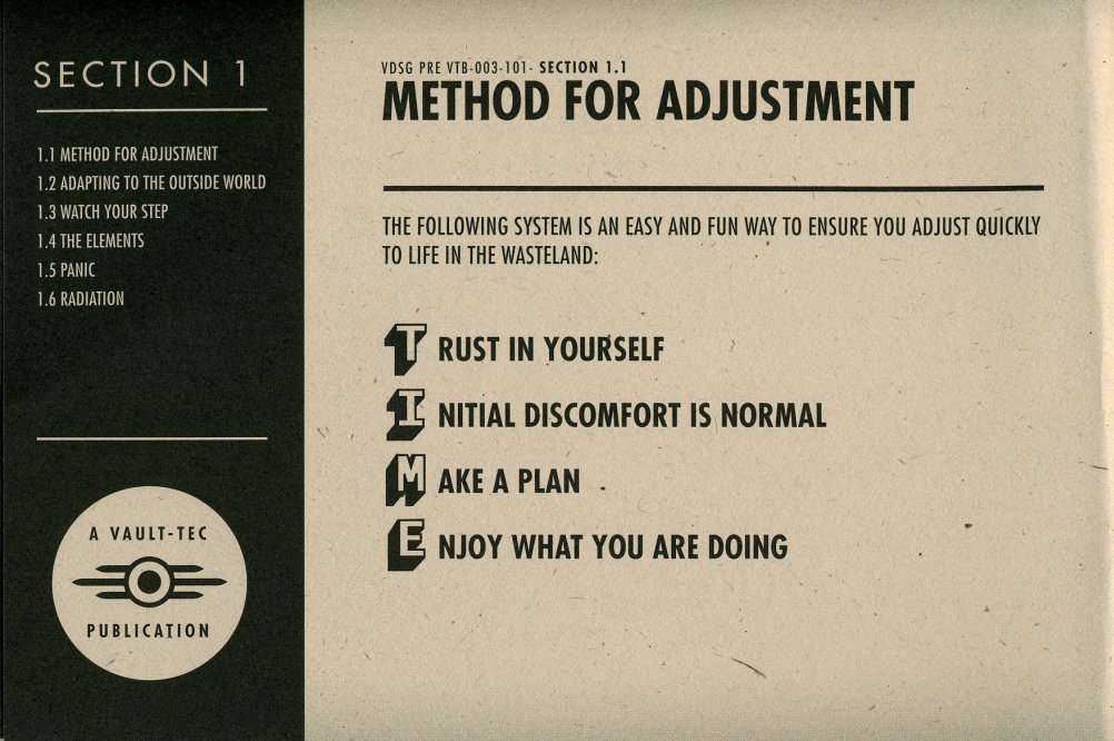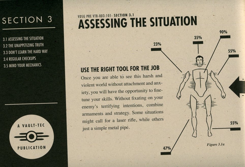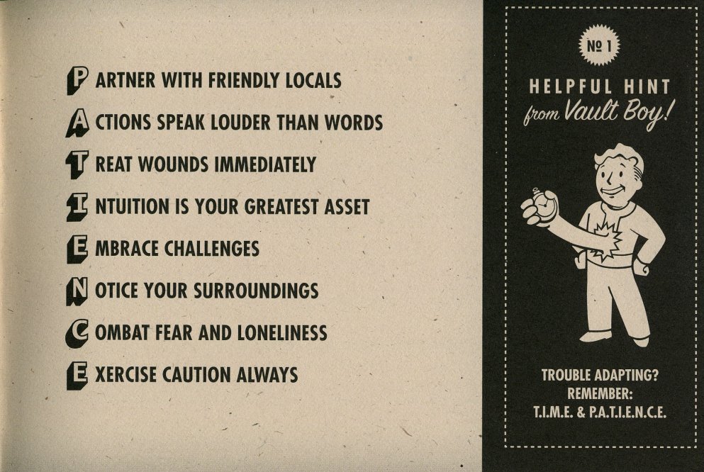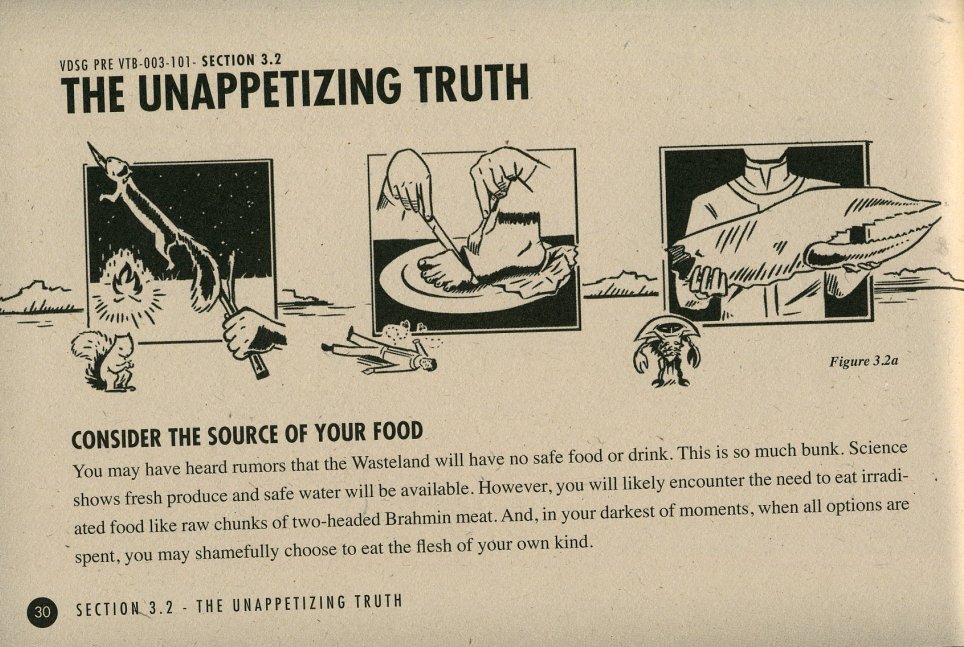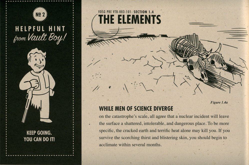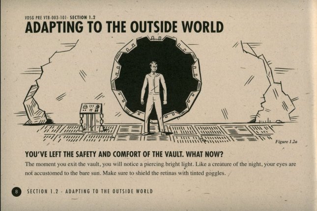 Причината този път е така нареченият „Vault Dweller’s Survival Guide“ – специален наръчник разработен от Vault-Tec, който говори за това как да оцелеем след световна ядрена война.