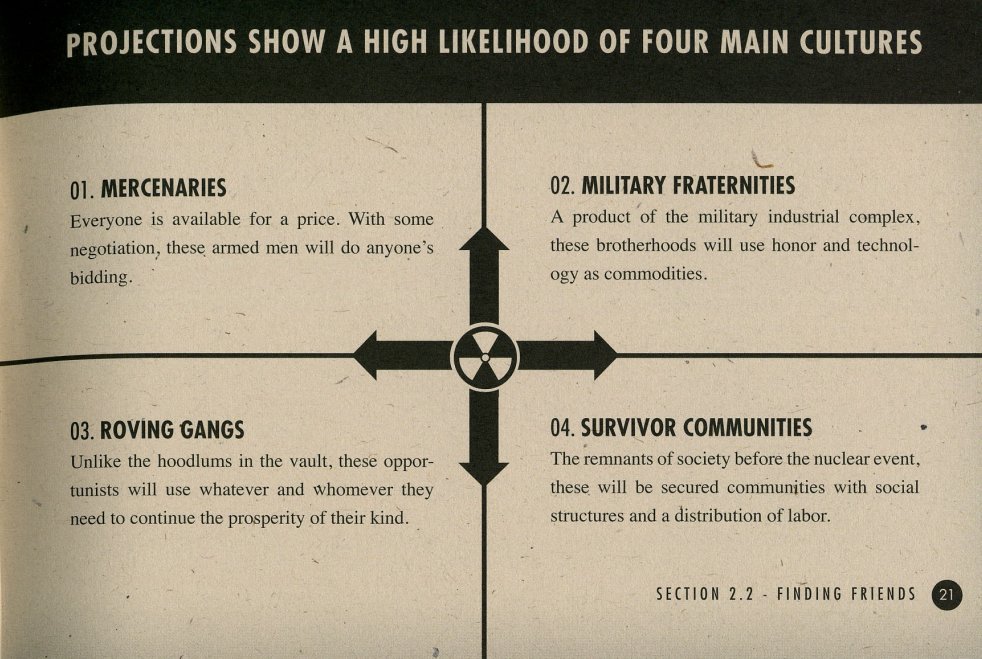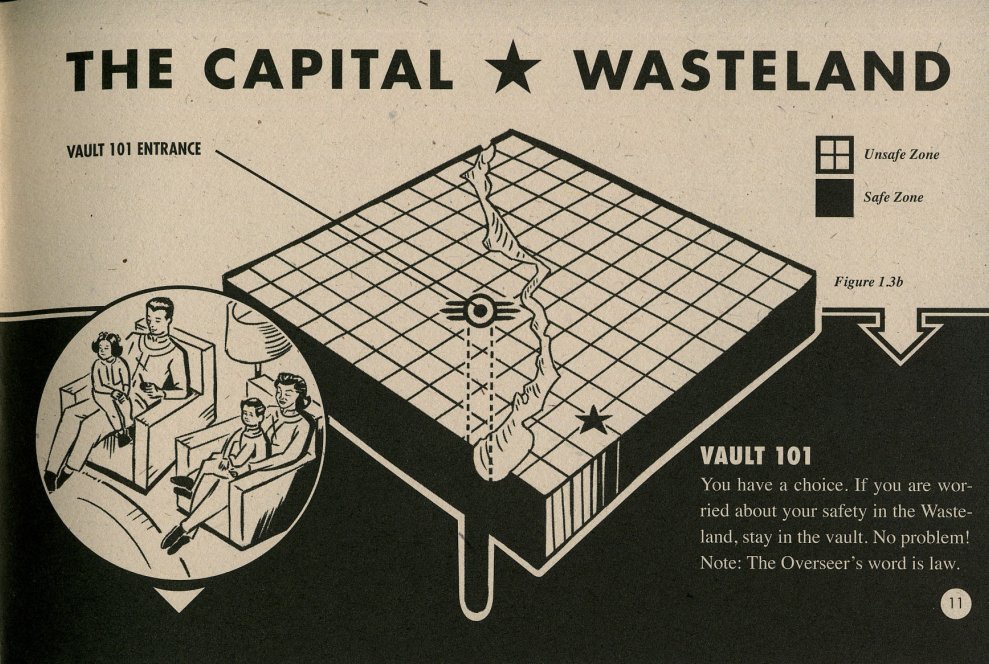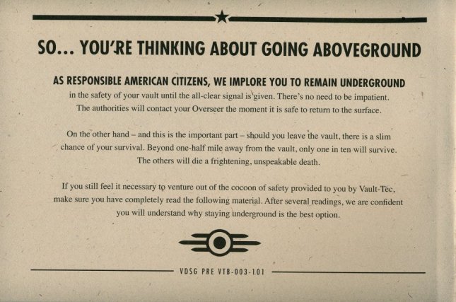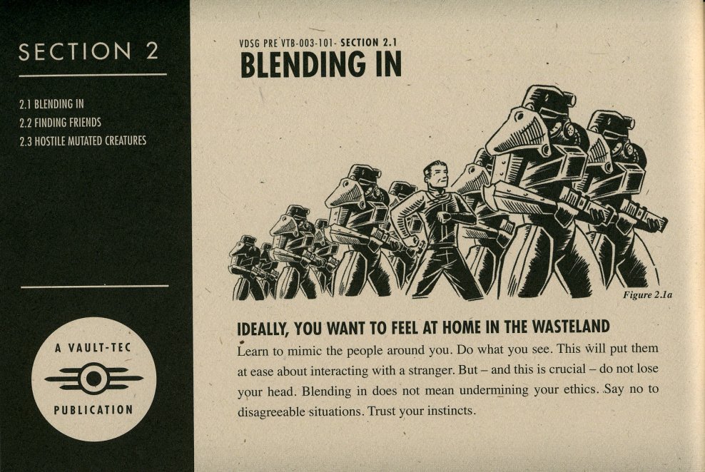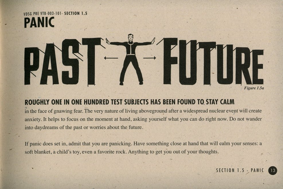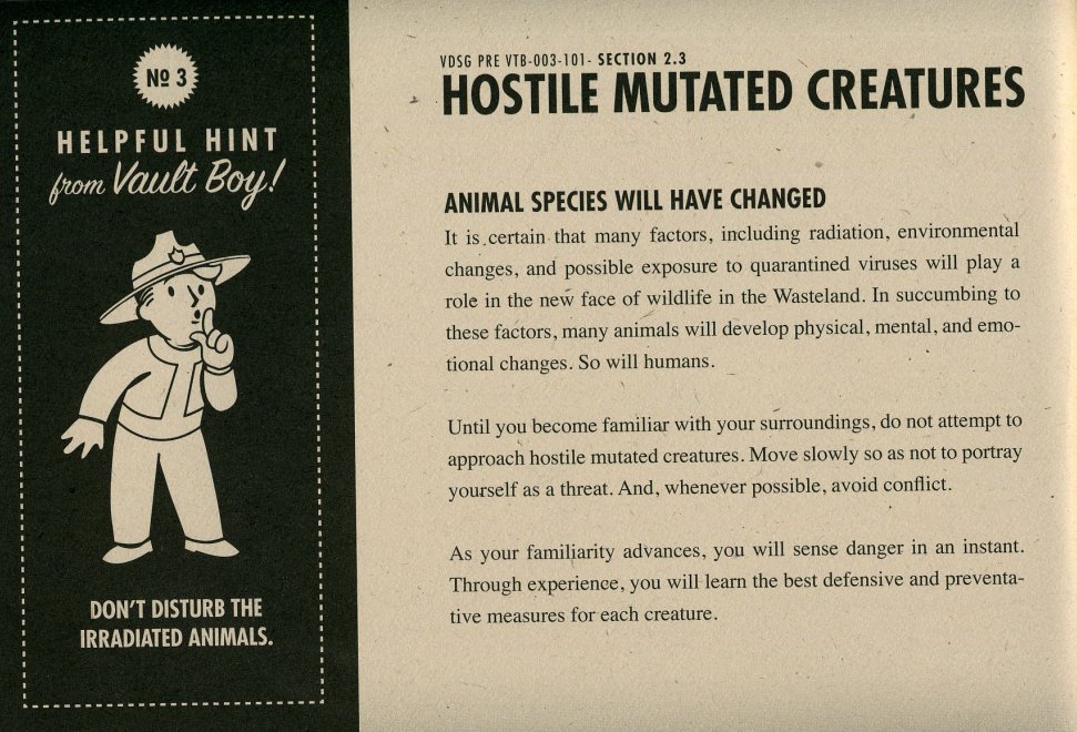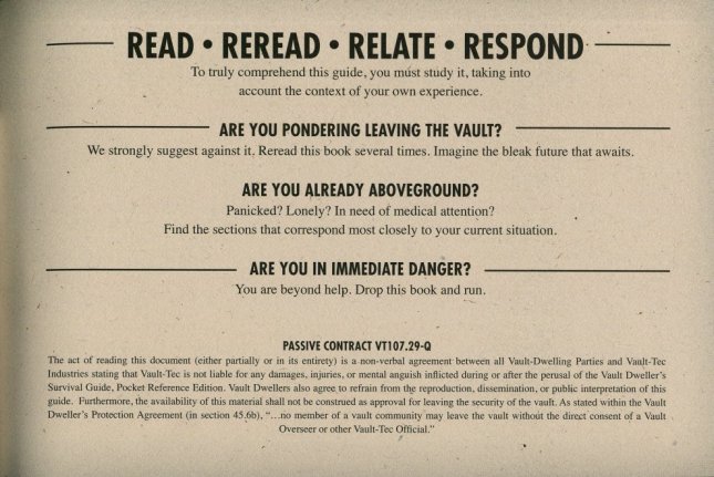 Причината този път е така нареченият „Vault Dweller’s Survival Guide“ – специален наръчник разработен от Vault-Tec, който говори за това как да оцелеем след световна ядрена война.