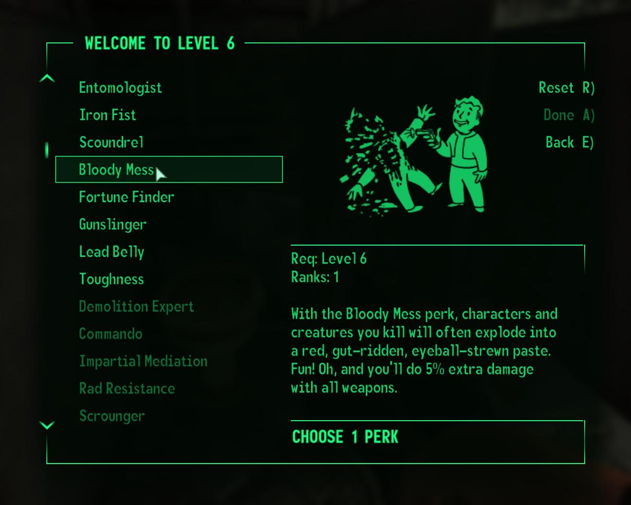BTW едно малко съветче – вдигането на някои от S.P.E.C.I.A.L.-ите до 10, до известна степен е загуба на точки. Причината е, че играта предлага различни варианти за перманентно увеличаване на показателите: