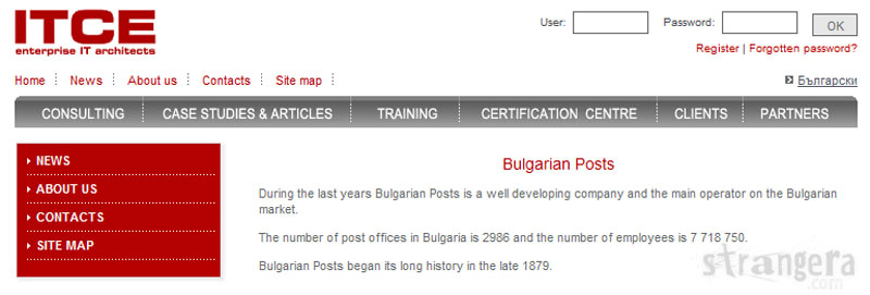 Един от клиентите на ITCE е една хубава правителствена организация, наречена Български пощи. До тук всичко е наред. Само дето ITCE са публикували доста интересна информация за точно този свой клиент: