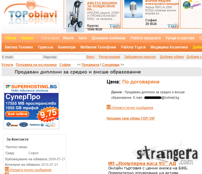 UPDATE: УОУ! Историята продължава! Въпросната обява вече е свалена от сайта, но Георги М. е писал на мейла и даже е получил отговор! Цялата потресаваща история, можете да прочетете в блога му – Пък моята диплома е само 1400 лв. [damusenevidi.blogspot.com]