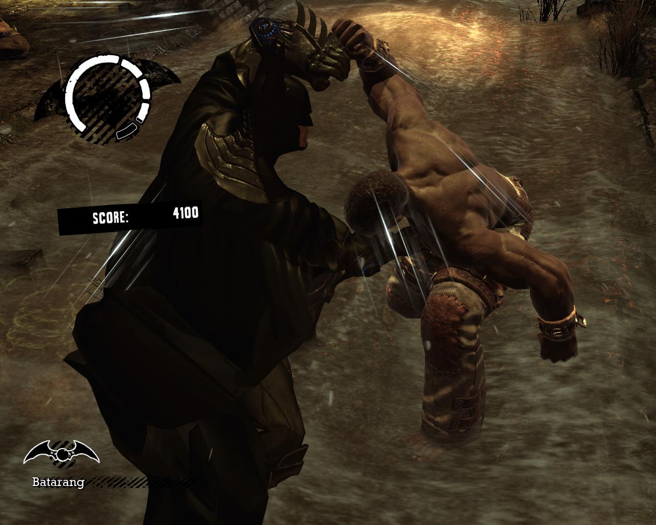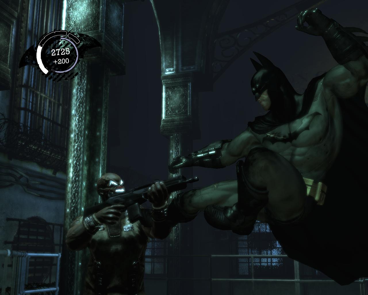 Принципно на easy и normal нива на трудност, когато някой тръгне да ви напада над главата му се появяват 3 светкавички които индикират атаката (те липсват на hard). От там вие имате няколко варианта – да се дръпнете, да блокирате или да го цапардосате първи. Атаката и блока се случват посредством двете копчета на мишката което е основна причина за критики към играта от разни хора, твърдящи че бойната система е твърде опростена. Аз не съм съгласен с това твърдение обаче. Първо дори само тези два бутона могат да се комбинират по множество начини. Например докато контраатакувате имате възможност да прекъснете серията за да ударите някой друг, както и нищо не пречи да прекъснете атака за да блокирате. С напредване в играта отключвате още няколко умения на Батман който ще ви позволят да сваляте хора само с един удар, след като направите определен брой успешни удара да речем. Можете да сграбчите някой и да го хвърлите, да зашеметите група от врази или да използвате батаранга си за да зашеметите или обезвредите някой на другият край на стаята. Различните гаджети които ще придобивате, ще ви отключват нови и нови начини по който да причинявате болка. Основното в Free Flow системата е, че макар да не е много реалистично ще можете с лекота да се прехвърляте през цялата стая нанасяйки удар след удар, и така да навръзвате дъъъълги комбота 😛 За капак, цялото нещо изглежда отвратително добре.