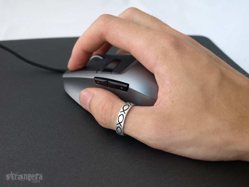 Първото което ще забележите при него е, че лявата му част е издадена навън, така че да поставите палеца си върху него докато работите с мишката. Резултатът е, че палеца ви няма да се трие в повърхността на бюрото/пада ви и по този начин няма да имате нежелани смущения при работа. BTW забелязах че при продължителна игра ръката ми наистина се чувства по-добре с него.