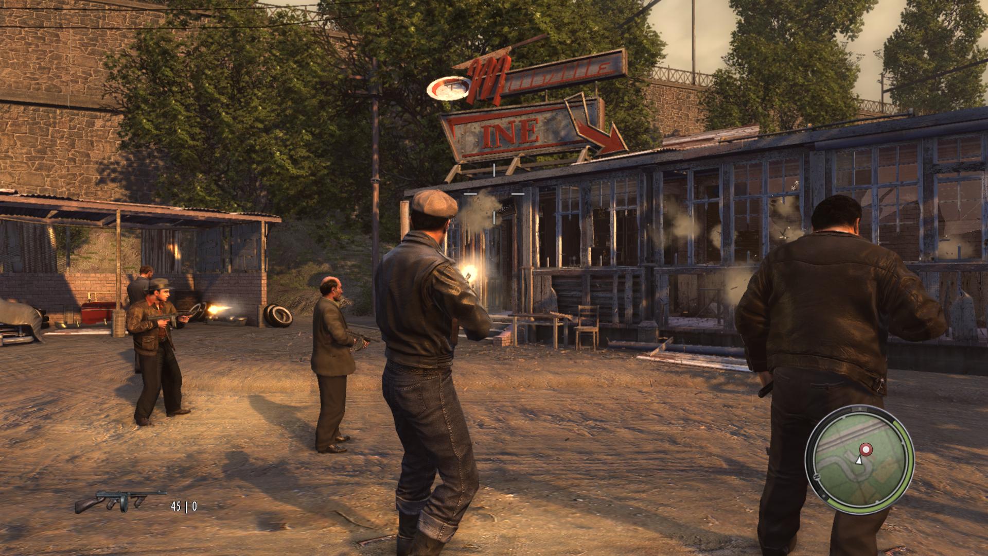 Е къде е проблема тогава, ще кажете вие? Ами проблема е в баланса между тези неща. Реално погледнато всичко е ок, но в играта има твърде малко ганкстерски неща. Mafia II предлага чудесни оръжия, и прилична къвър система но поне за мен престрелките и баталните сцени бяха ТВЪРДЕ, ТВЪРДЕ малко за игра от този калибър… А и въпреки, че бяха съвсем ок, не мога да посоча никоя от тях за изключително интересна, и или запомняща се. Което е твърде жалко, защото огромна част от потенциала на Mafia II и Empire Bay остава не оползотворен. Към това добавяме и чудовищно тъпото AI, което е повече от очевадно особено към последната мисия, където на няколко места ботовете имат само един потстъп към вас, т.е. доста често ще виждате как се нареждат един след друг точно пред мерника ви. А и гангстерите явно не са много умни, защото това всеки път да се показват от едно и също място им е нещо като хоби.