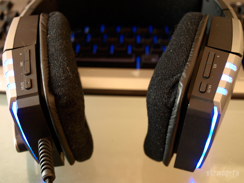 Относно това колко ефективна е APM & Alert системата на Razer Banshee 😀 – от гледна точка на играча, тук положението е още по-зле и от Razer Spectre. Забравете да видите тия ми ти светлинки. Единственото, което се вижда на тъмно (и то съвсем леко) са трите предни лампички, които поне аз виждам с периферното си зрение (което по-скоро дразни). Единственият реален плюс от APM & Alert системата на слушалките е споменатото по-горе предупреждение към жена ви – миличко, ако свети в червено, не ме закачай. 😉