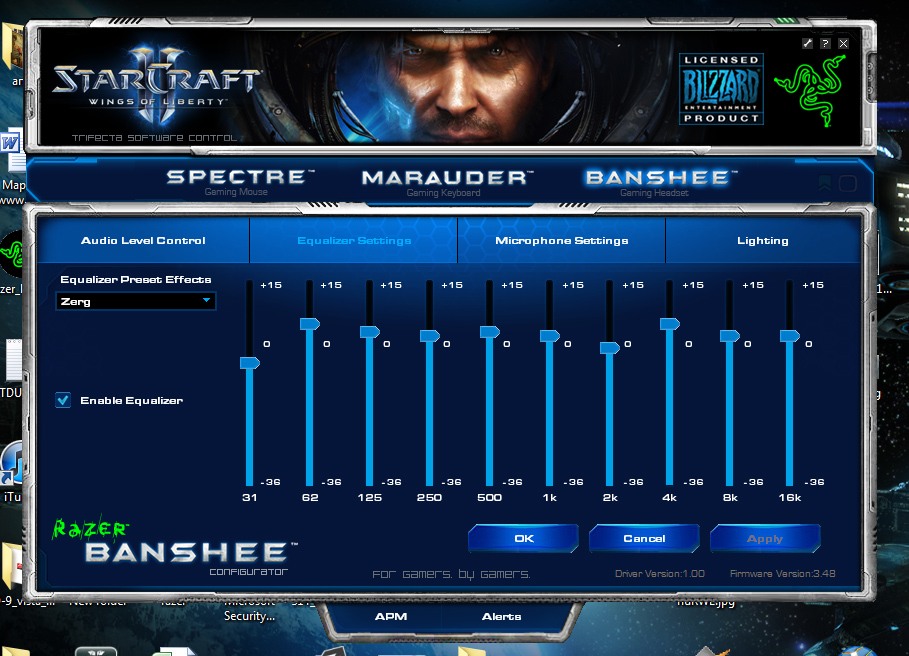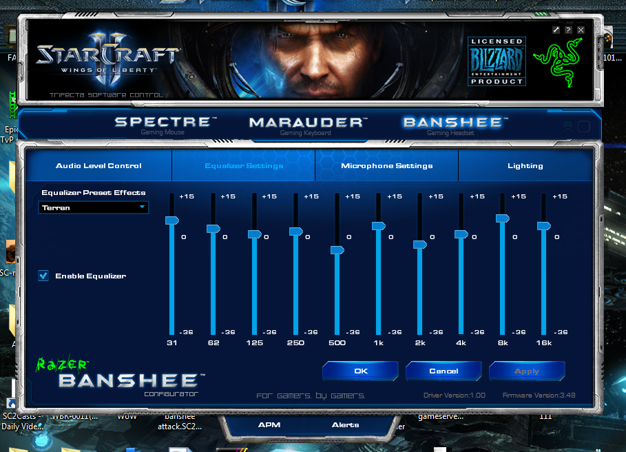 Razer Banshee има и специален старкрафтсти еквилайзер, който съм разгледал в частта със софта.
