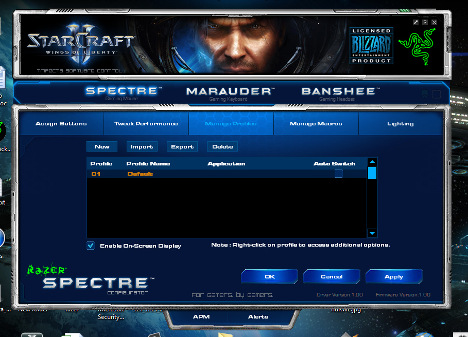 Manage Profiles отговаря за контрола над различните профили, които сте създали. Освен това, както е обичайно за продуктите на Razer, оттук можете да казвате на различните профили да се активират при пускане на дадена апликация. Например, да имате един профил с определени настройки за StarCraft II, друг за FlightControl, трети за Photoshop и т.н., и те да се активират автоматично при стартиране на дадената апликация.