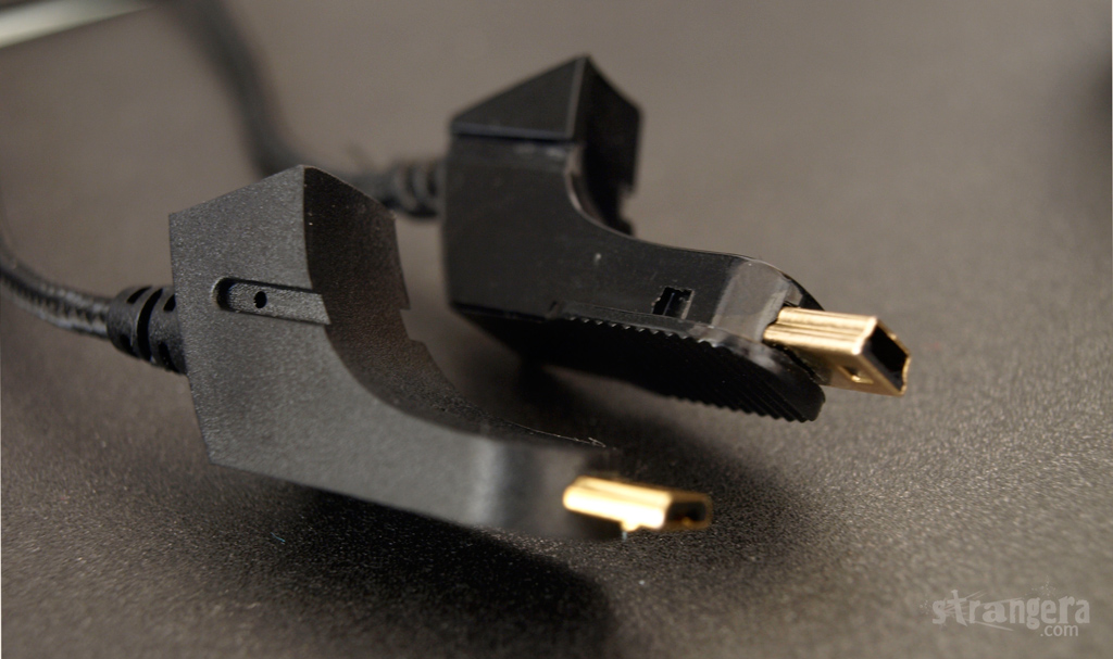 Като заговорихме за кабели накрайника, който се включва в мишката/док станцията също е претърпял леки подобрения (отгоре е този на мамбата, отдолу този на Naga EPIC):