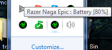 Батерията на Mamba-та също е преживяла известни подобрения и вместо с 800 mAh батерия, EPIC може да се похвали с цели 1100 mAh… Което си е необходимо, за да може всичките тия светлинки да бъдат изхранени. Резултата е (според Razer) 12 часа нонстоп гейминг и 72 часа нормална употреба (тоест цъкате, цъкате, после я слагате на док станцията, докато не сте на PC-то и т.н.). Моите тестове показват горе-долу сходни резултати. Идеята е, че всеки път, когато сядах на PC-то пусках хронометър, а когато не ползвах компютъра просто изключвах мишката без да я слагам на док станцията. Съответно при светлини настроени на Dim (това е дефаут сетъпа) и по мое усмотрение 500 Hz Polling Rate (по подразбиране е 125 Hz), изкарах 12 часа и 18 минути при включен „Spectrum Cycling“ и точно 13 часа при избран един цвят преди батерията да умре.