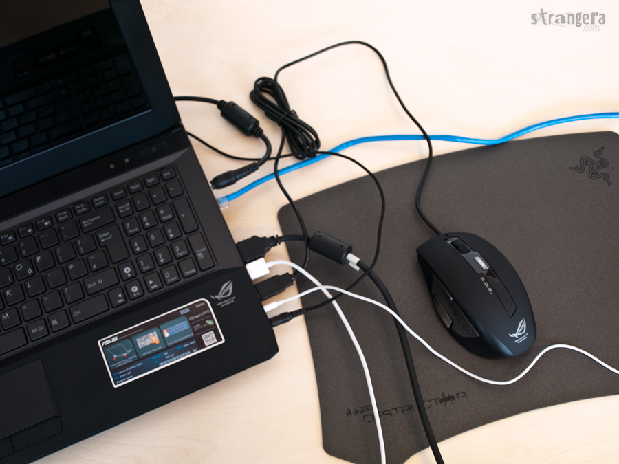 Което разбира се е продиктувано от специфичното охлаждане. След като наръчках малко повече кабели обаче, осъзнах защо обикновено DVD-то се слага от дясната страна на лаптопа, а входовете за захранване по ъглите: