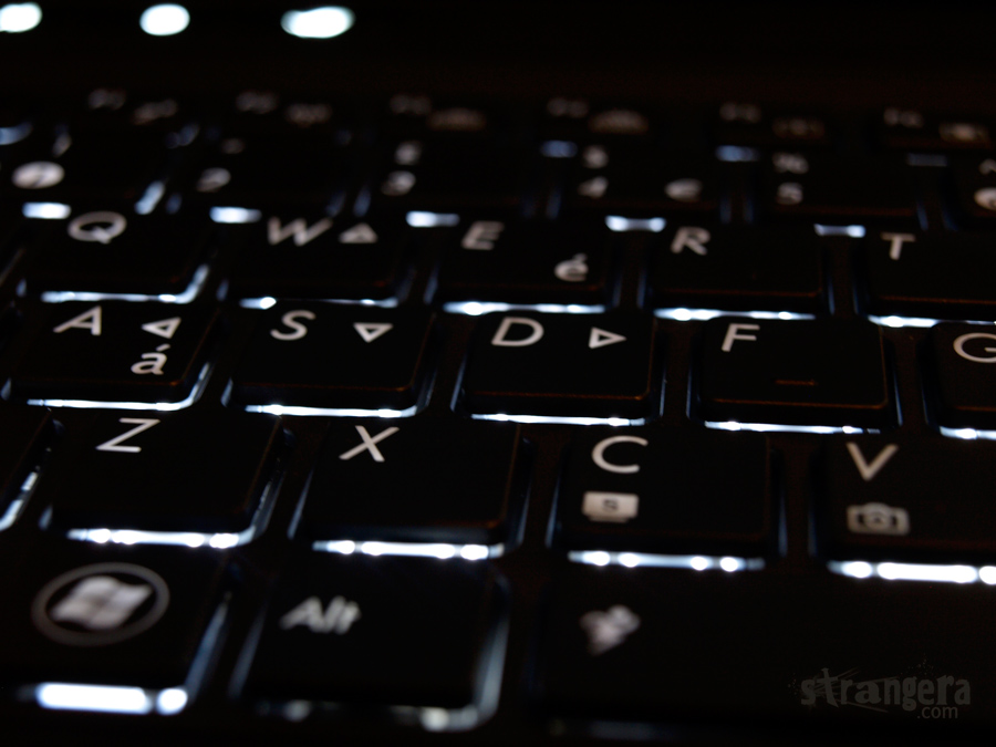 Друг „елемент“ от клавиатурата е подсветката, която откровено казано… не ме кефи. Проблемът е, че освен от самите бутони, светлината „избива“ и под тях.