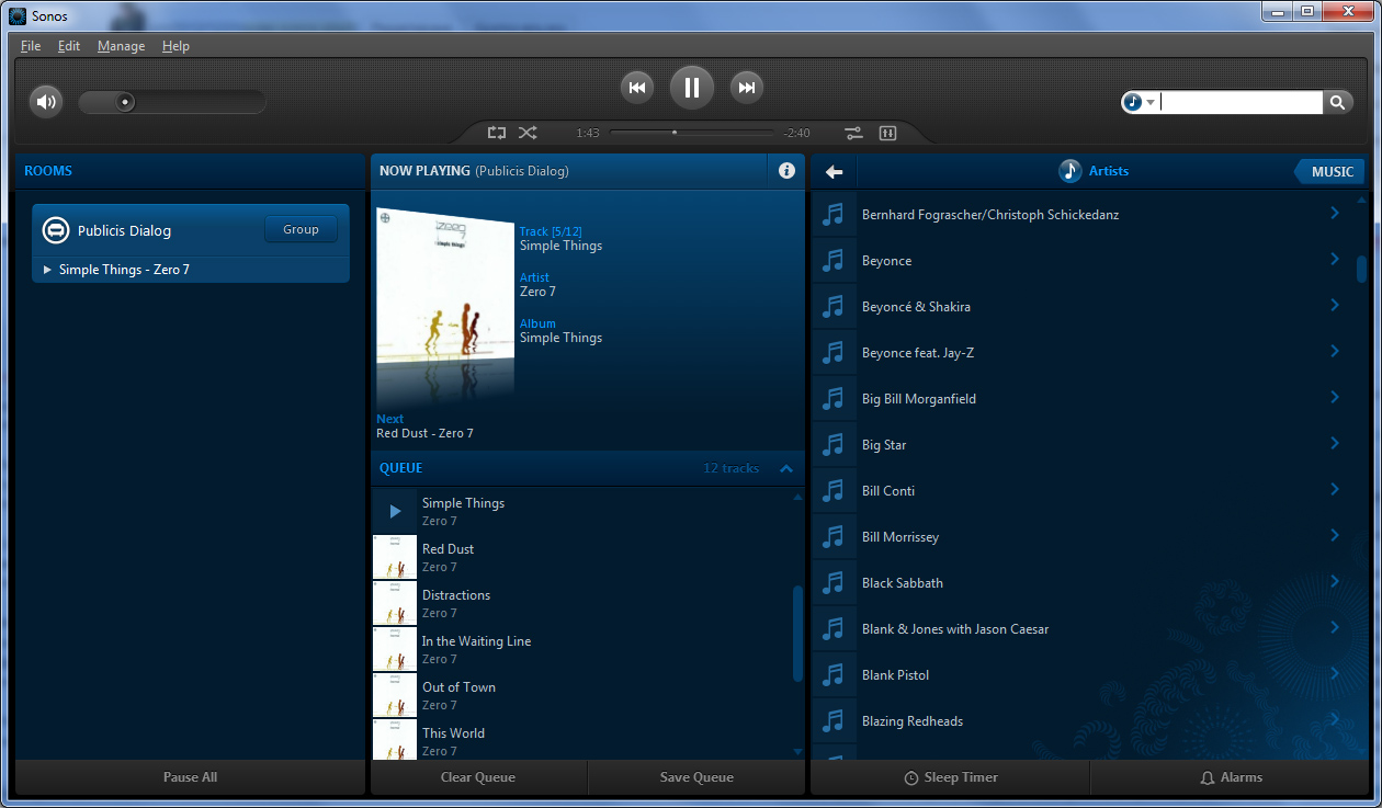 SONOS са се справили изключително добре с направата на софта, и без значение дали седите пред компютъра, iPhone, Android, iPad и т.н., нещото е интуативно и лесно за употреба. От там нататък всеки може да усилва и намалява звука, сменя песните и т.н. Имате опция също така да добавяте парчета в Queue-то, което е особено яко именно в офиса, защото всеки може да адва каквото му се слуша, без да си мърда от мястото. Софтът работи идентично на всички устройства, като просто на PC/MAC/iPad версията виждате повече неща. 🙂