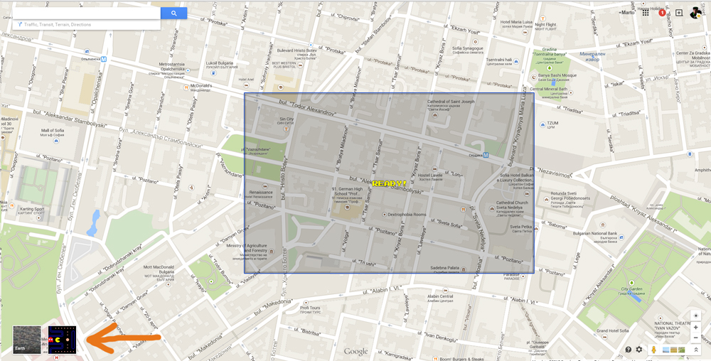 За да я активирате, просто отворете рандом локация в мапс, и изберете pac-man иконката доля в ляво: