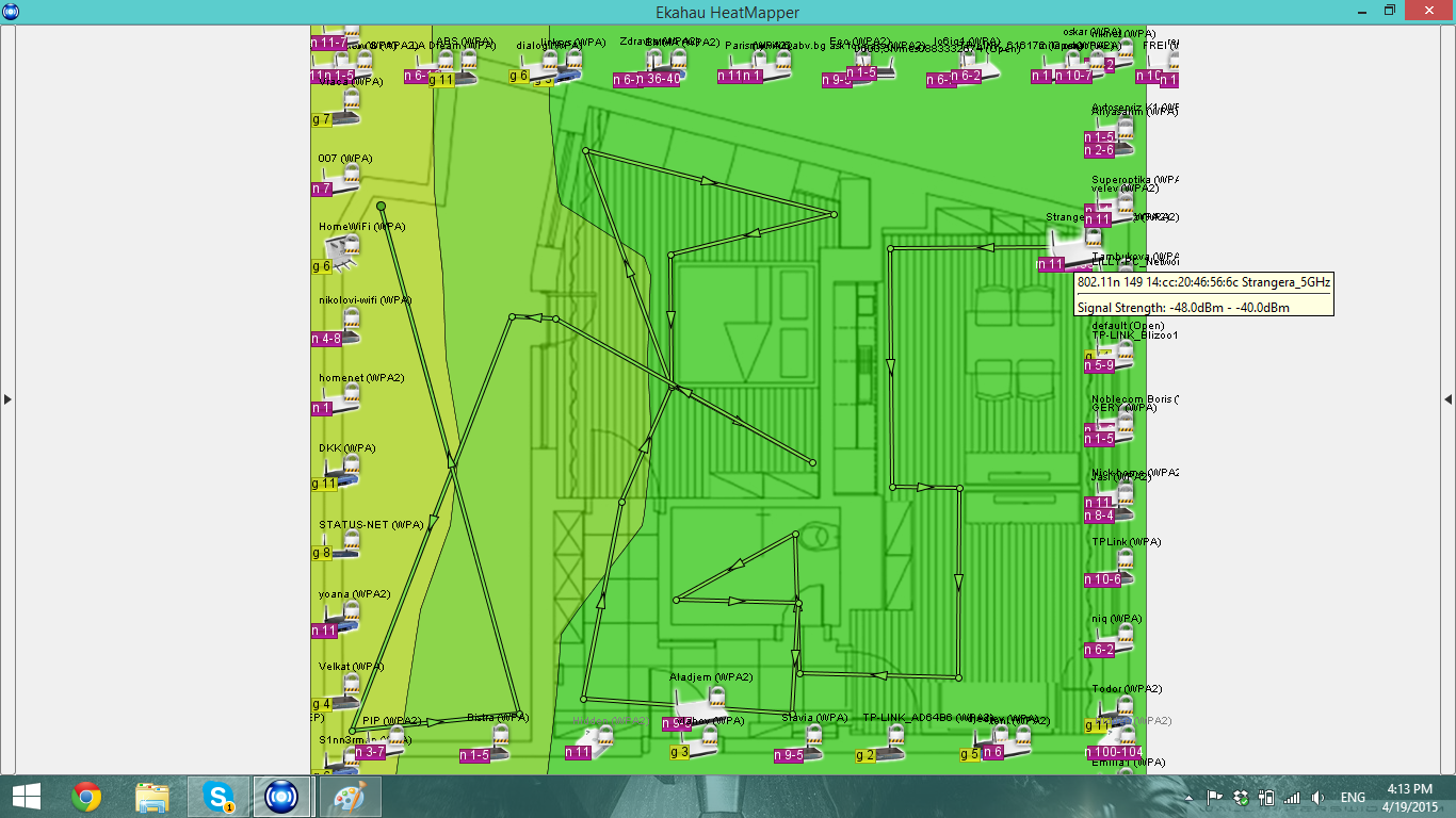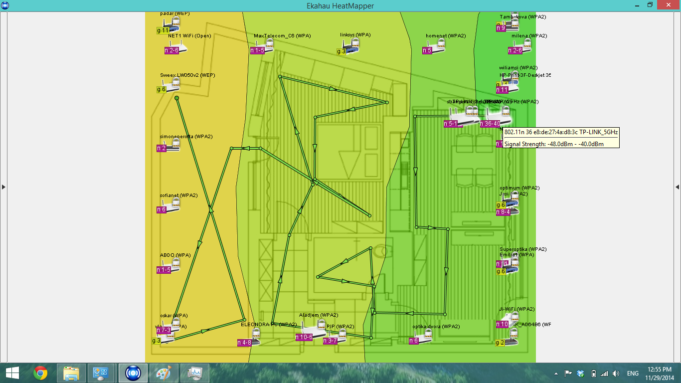 Както виждате, разликата е повече от осезаема. Схемите са направени посредством програмата Ekahau HeatMapper.