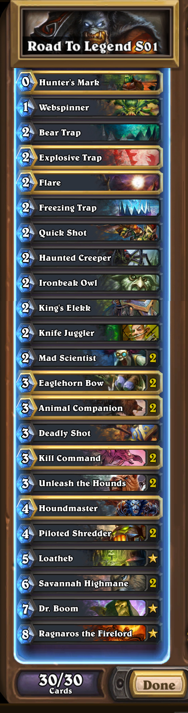 Както може би знаете, миналата седмица стартирах една „рубрика“ наречена „Road to Legend„. В нея, с ваша помощ създадох Hearthstone дек с който ще боря новия сезон. Ако сте пропуснали, но ви е интересно – инфото е тук.