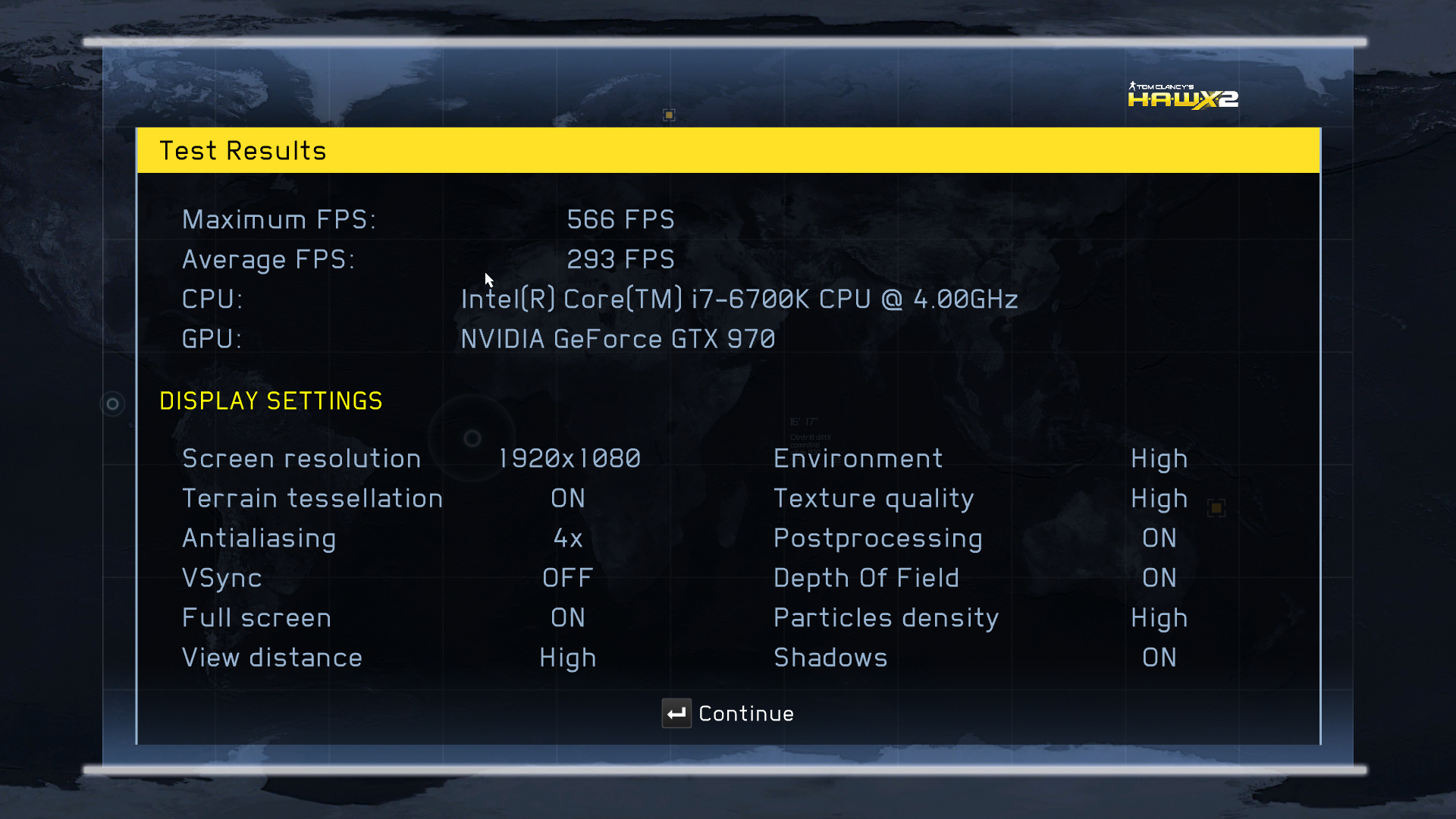 • Tom Clancy’s H.A.W.X. 2 (оказа се, че го имам в Uplay, пуснах го) 😀 – DX11, всичко на макс. Средно 293 кадъра. 😀