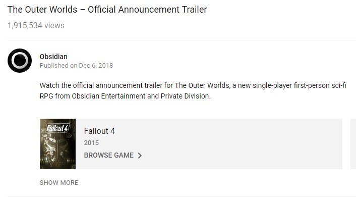 THE OUTER WORLDS идва по някое време през 2019-та.