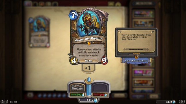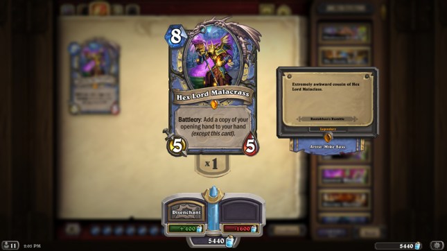Легендарните карти които отворих са – Gonk, the Raptor; Halazzi, the Lynx; Hex Lord Malacrass; Hakkar, the Soulflayer и златен Da Undatakah.