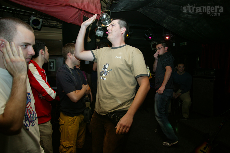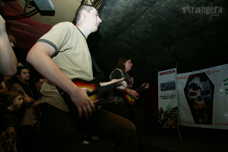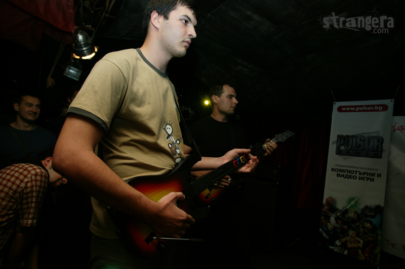 Естествено го сложихме да седне, и му дадохме да изпие още една бира за да се успокой оставяйки „инцидента“ на страна. Състезанието продължи прогресивно нагоре, като с всеки мач игрите ставаха все по-интересни, и по-интересни. kainy направи няколко особено атрактивни игри, като особено тази с младежа от втората снимка по-долу, трябва да остане в историята като един от най-оспорваните „Guitar Hero: Metallica“ двубой евър.