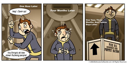 Сещате ли се за комикса на Penny Arcade – Vault 77: One man and a crate of puppets посветен на Fallout 3?