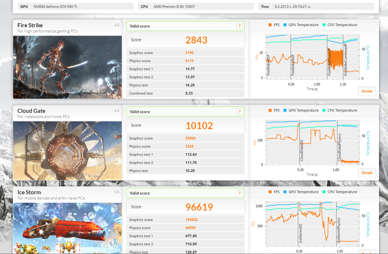 Повече за различните тестове може да прочетете тук – futuremark.com/benchmarks/3dmark, а на долните две картинки може да видите как изглеждат резултатите и графиките в новата версия на бенчмарка: