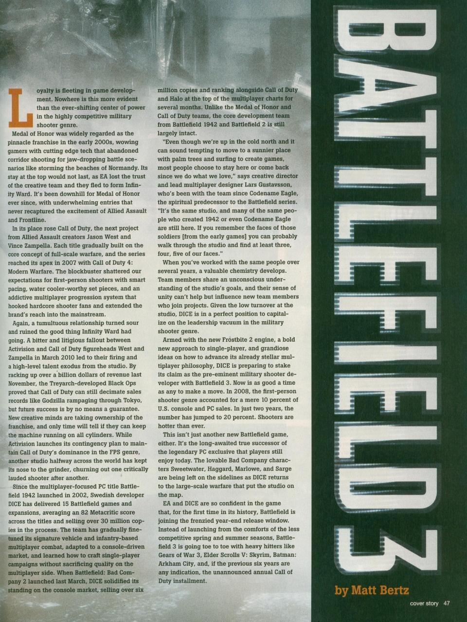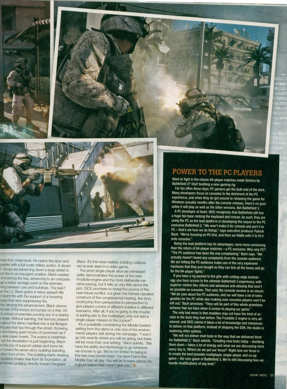 Както сигурно знаете, в последният брой на Game Informer има тонове ексклузивна информация за Battlefield 3… И както се досещате, в Интернет се срещат разни много добри хора, които след като са си получили броя от списанието, са седнали и внимателно са сканирали всяка една страничка, за да може простите хорица като нас 😀 да си прочетат въпросното инфо на спокойствие. 😛
