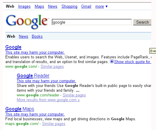 За около час и половина, най-големият сърч енджин на планетата, започна да предопреждава потребителите, че “this site may harm your computer” за ЦЕЛИЯТ Интернет. И въпреки че проблема беше разрешен бързо, имаше известен спорт кой точно е виновен за ситуацията.