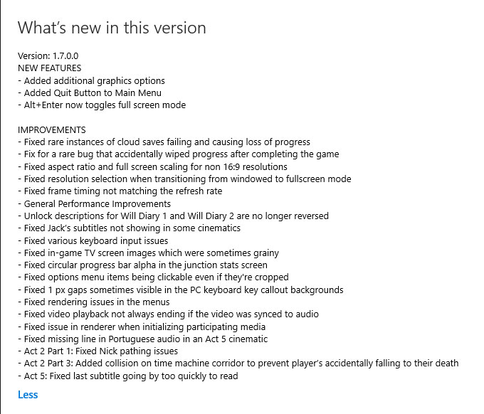 Ако се вълнувате от PC версията на Quantum Break, най-вероятно ще се зарадвате да разберете, че в събота Remedy са пуснали втори ъпдейт за PC версията на играта оправящ голяма част от технологичните проблеми на въпросната.