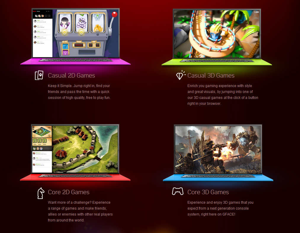 Това което вижда първо, е че подобно на Battlelog-а, GFACE ще се използва като отправна точка за стартиране на най-различни игри (нещо което не се съмнявам, и DICE ще се опитат да наложат със следващите версии на BF). Според Crytek обаче, в портфолиото на GFACE ще влиза всичко от кежуъл 2D-та, до Core 3D игри, като поне от скрийншотите става ясно, че Warface със сигурност ще ползва услугите на платформата.