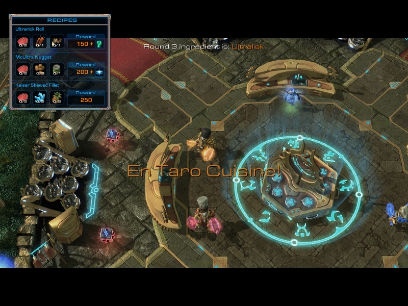 A three-round cooking extravaganza! Aiur Chef takes you to a remote area of the planet Aiur, where aspiring zealot chefs skilled in the arts of cooking and killing compete for the title of Executor Chef.